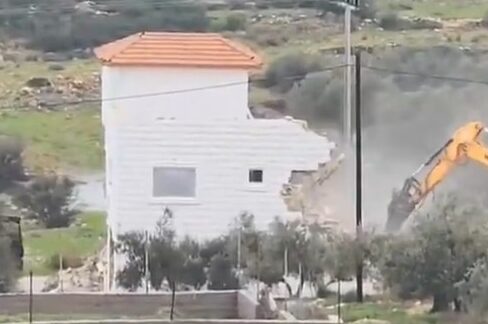 Israeli forces demolished a Palestinian home on Tuesday in the town of Kafr ad‑Dik, west of Salfit in the central part of the occupied West Bank.