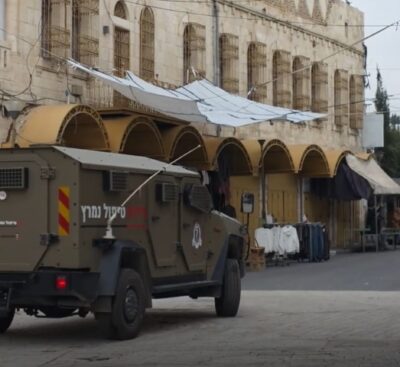In Hebron city, dozens of illegal Israeli paramilitary colonizers stormed the Old City and marched through neighborhoods, chanting anti‑Palestinian slogans, while Israeli soldiers blocked Palestinian vehicles and prevented residents from leaving their homes.