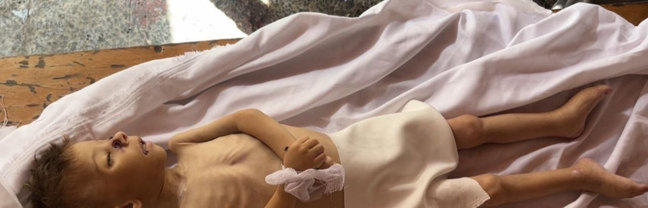 A video shows an emaciated mother, holding the body of her young son, who was killed today while trying to access food at the US-run ‘Hunger Games’ style arenas that they call ‘aid’ sites:
