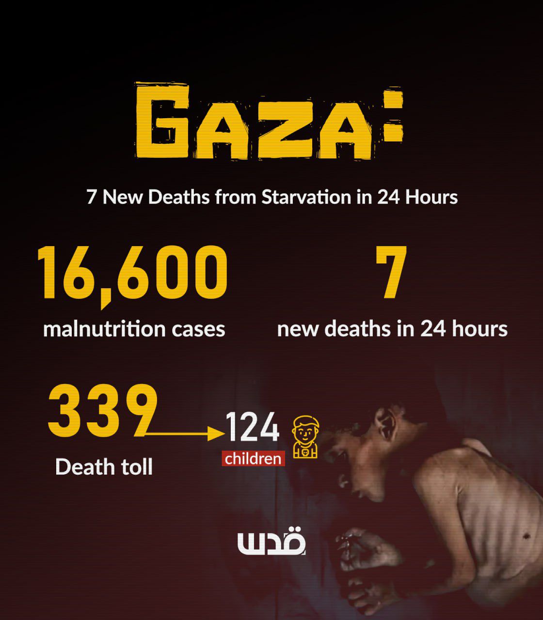 7 Palestinians died of starvation in the past 24 hours.