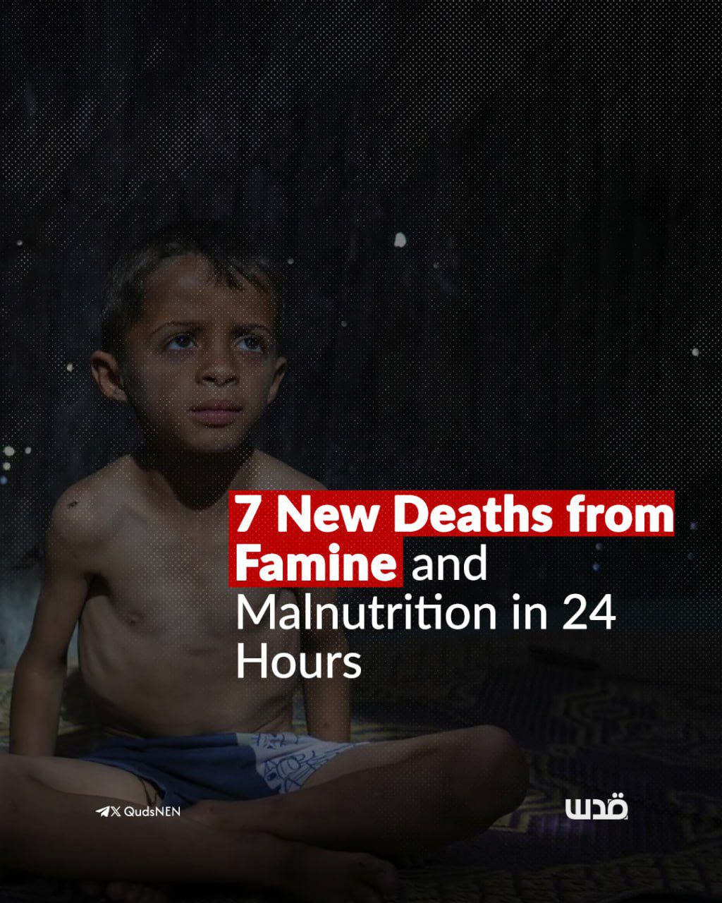 Seven Palestinians, including a child, died of starvation in Gaza within the past 24 hours, according to the Director-General of the Ministry of Health in Gaza, speaking to Al Jazeera.