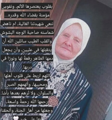 Early Monday, an elderly Palestinian woman from the town of Jayyous, east of Qalqilia in the northern West Bank, died from injuries she sustained after Israeli occupation soldiers stormed her home and assaulted her during at dawn.