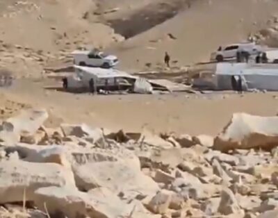According to the Jerusalem Governorate, the demolitions targeted two residential units and a sheep pen belonging to Palestinian citizen Mohammad Al-Ma’azi, as well as another residential unit and sheep pen owned by his brother, Jamil Al-Ma’azi.