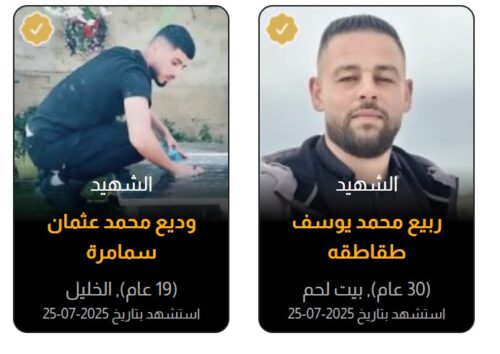 WAFA news reported that Wadea’ was the brother twin brother of Sanad Hamamra, whom an illegal Israeli paramilitary colonizer killed in the same spot on January 11, 2023.
