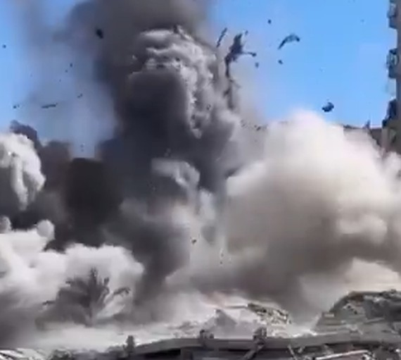 The army also fired several missiles at the Al-Kawthar residential tower in Rimal neighborhood, shortly after ordering the Palestinians to evaluate, and leveled the building.