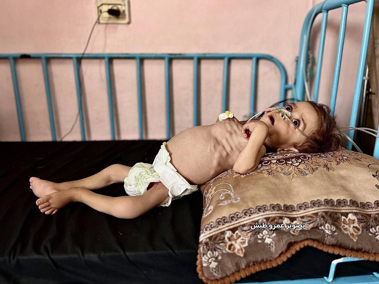 Three-year-old Karim Muammar is facing the risk of death in Gaza due to severe malnutrition, liver enlargement, and rickets, as Israel prevents him from traveling abroad for medical treatment and deprives him of food and medicine under the ongoing blockade and war.