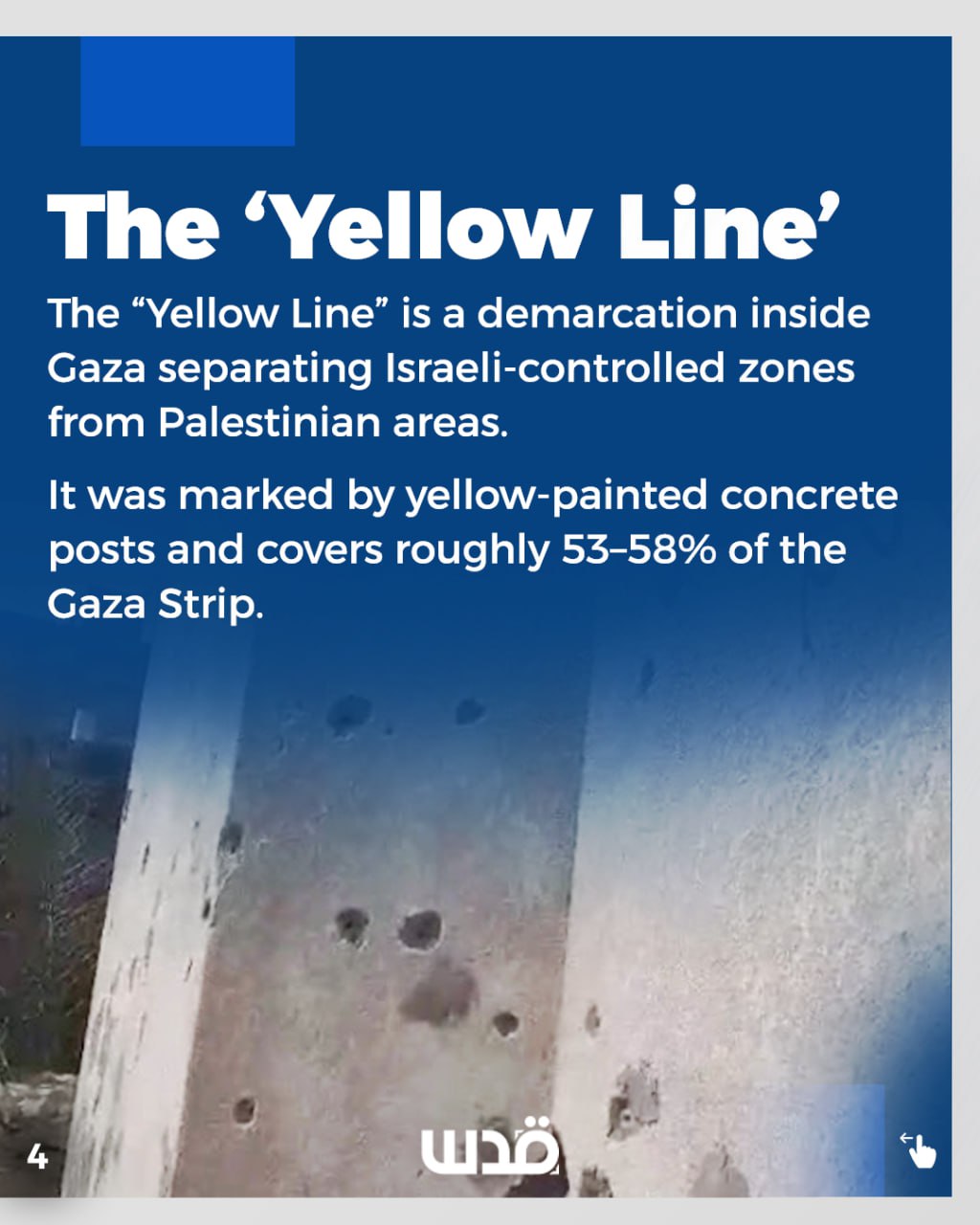 The “Yellow Line” refers to Israeli-designated military zones and buffer areas inside the Gaza Strip.