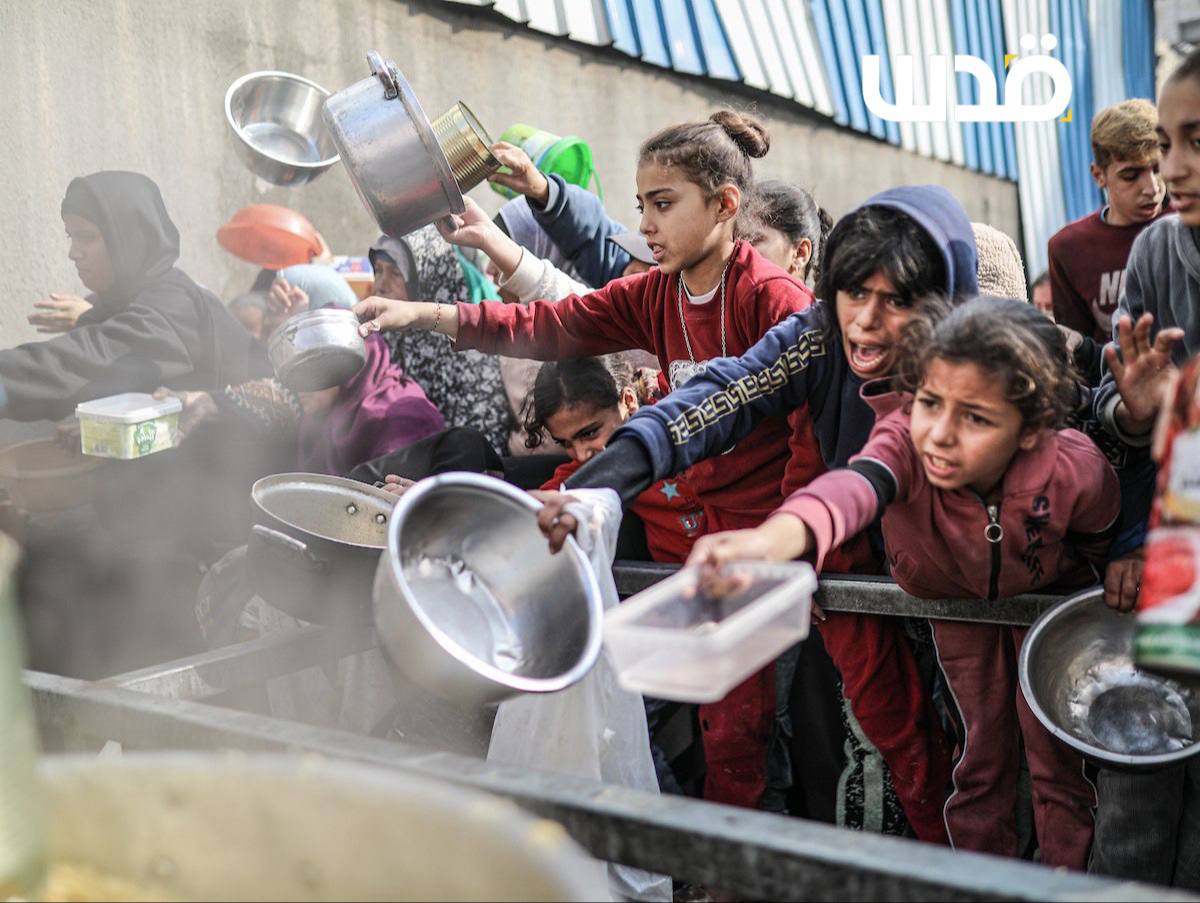Palestinians crowd around a charity kitchen in the Nuseirat refugee camp, central Gaza, in an attempt to obtain a meal amid worsening food shortages.