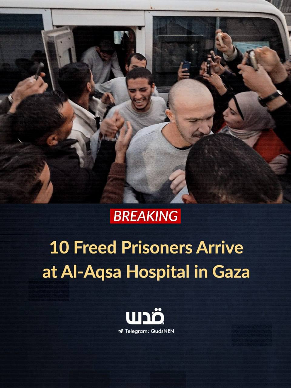 Ten freed Palestinian prisoners arrive at Al-Aqsa Martyrs Hospital in Gaza. All had been held in the notorious Sde Teiman prison. They all required medical treatment after being tortured in Israeli custody.