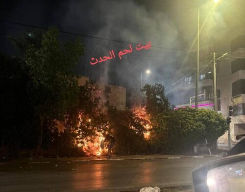Additionally, fires erupted in trees surrounding the Bilal Bin Rabah Mosque as a result of tear gas canisters fired by the army; Palestinian Civil Defense crews rushed to the scene and successfully extinguished the fires.
