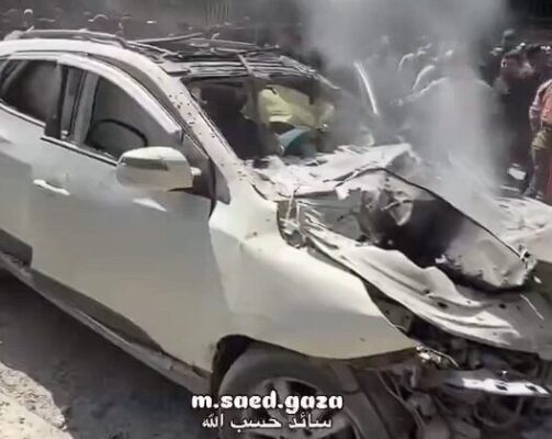 Medical sources and civil defense teams reported that four Palestinians were killed when an Israeli strike targeted a vehicle near Haidar Roundabout west of Gaza City.