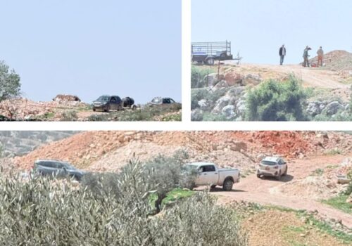 Local sources said that around 40 colonizers, accompanied by Israeli occupation soldiers and police, invaded the areas of Ras Freij, Krum al‑Gharaba, and Al‑Mattata with four trucks and a bulldozer, where they began leveling land and installing structures in preparation for establishing the outpost.