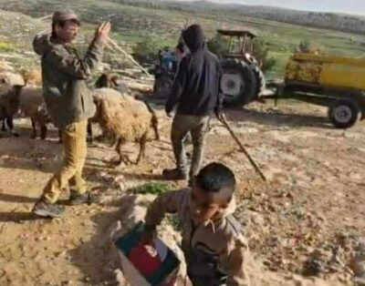 The incident occurred when the soldiers attacked several Palestinian shepherds, including children, after they invaded Khirbet Ghuwein Bedouin community near as-Samu’ town.