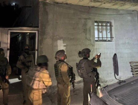 According to media sources, dozens of soldiers entered Baqat Al-Hatab village, east of Qalqilia, forcing numerous families from their homes while conducting extensive searches.