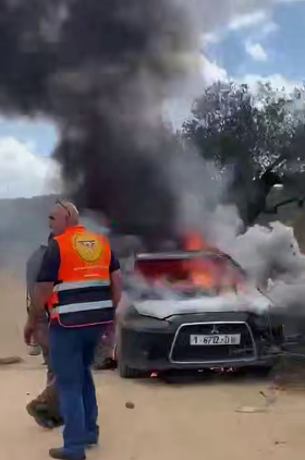 A number of colonists attacked citizens while they were picking olives in the Jabal Qamas area of the town, beat them, and set fire to four citizens’ vehicles that were in the place, which led to their burning, including a vehicle belonging to Agence France-Presse photographer Jaafar Shtayyeh.