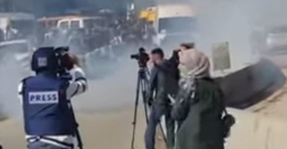 Israeli soldiers resorted to the excessive use of force, Saturday, against dozens of Palestinian and international journalists during a nonviolent procession near Qalqilia Terminal, north of occupied East Jerusalem. The soldiers resorted to the excessive use of force against the journalists, and dozens of residents, while holding a nonviolent procession, demanding an end to the … Continue reading Israeli Soldiers Injure Palestinian And International Journalists Near Jerusalem