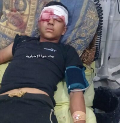 He added that, during their withdrawal, the soldiers targeted 15-year-old Nazeeh Eyad Awad, a student at Beit Awwa Boys Secondary School, striking him in the head with a concussion grenade as he was leaving his home in the Wadi al-Simya area to go to school.