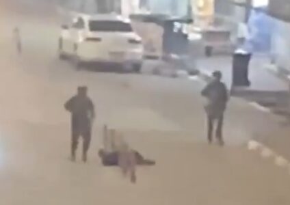 Medical sources said the soldiers shot a young man with a live round in the abdomen, causing life‑threatening wounds.