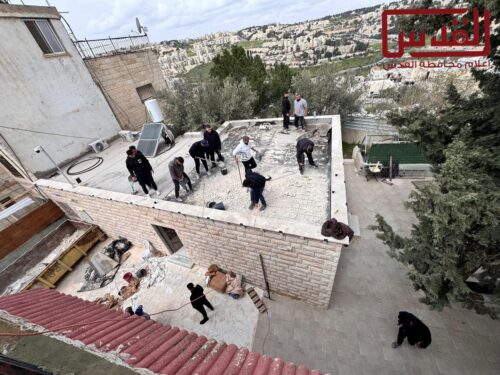 Israeli occupation authorities on Saturday forced Jerusalemite resident Ahmad Hamed Bkerat to carry out the demolition of part of his own home in the town of Sur Baher, in the southeastern outskirts of occupied Jerusalem, in the West Bank.