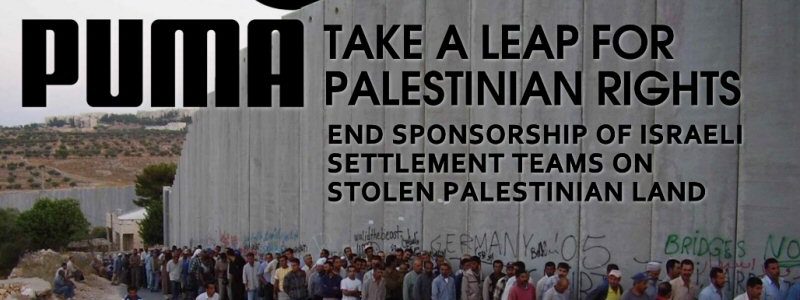 September 20, 2018 / By Palestinian Athletic Clubs To: Bjørn Gulden, CEO of Puma Cc: Management and Supervisory Board members: Michael Lämmermann, Lars Sørensen, Jean-François Palus, Jean-Marc Duplaix, Béatrice Lazat, Thore Ohlsson, Bernd Illig and Martin Köppel 10 September 2018 We are writing to urge Puma to end its sponsorship of the Israel Football Association (IFA) due to its deep … Continue reading More than 200 Palestinian Sports Clubs Urge Puma to End Sponsorship of Israeli Teams in Illegal Settlements