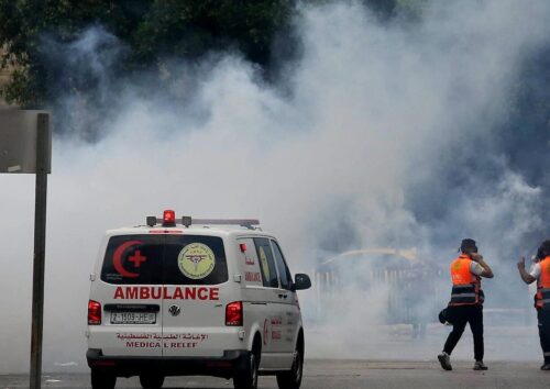 The PRCS said that two Palestinian young men sustained live gunshot wounds, one sustained shrapnel injuries from live rounds, while five citizens, including a child were shot with rubber-coated steel rounds.