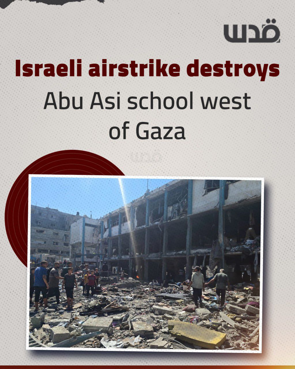 Israeli occupation army ordered the evacuation of the area surrounding Abu Asi School in western Gaza urgently. The school served as a refuge for hundreds of people who had been displaced from their homes by Israeli forces.