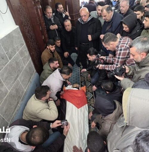 WAFA correspondent reported that mourners carried the young man’s body wrapped in a Palestinian flag, marched through the streets to the family’s home and the Doura Mosque, before finally laying his body to rest in the “Shamiya” cemetery.