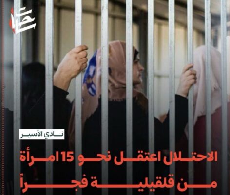 The Palestinian Prisoners’ Society (PPS) reported that Israeli occupation forces abducted at least fifteen women overnight from Qalqilia in the northwestern West Bank, most of them wives of former political prisoners, wives of current detainees and mothers of Palestinians killed by Israeli forces.