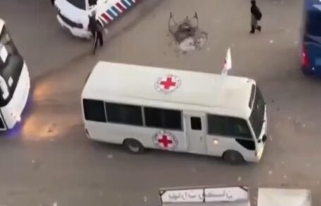 Red Cross vehicles transported the hostages to Israeli military custody for medical evaluation and reunification with their families.