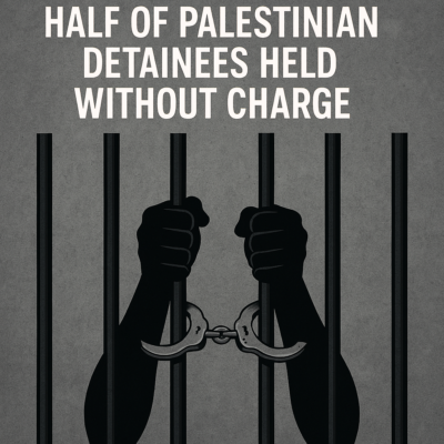 A joint human rights report released on Tuesday by the Commission of Detainees and Ex‑Detainees Affairs, the Palestinian Prisoners’ Society, and Ad-Dameer Prisoner Support and Human Rights Association revealed that nearly 49% of Palestinians held in Israeli prisons are detained without charge or trial.