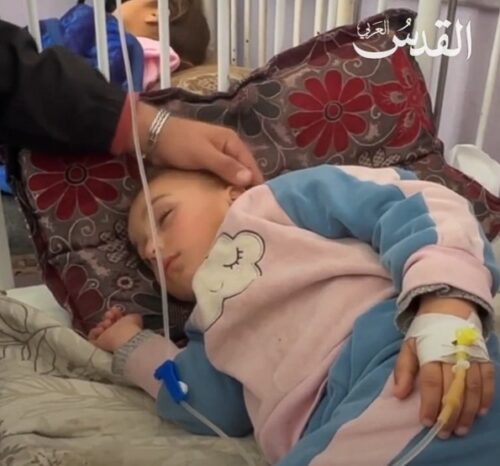 Inside the pediatric ward of Al‑Aqsa Hospital in central Gaza, six‑year‑old Masa Al‑Khatib lies on a narrow bed, her frail body connected to IV lines that keep her alive. Her face is pale, her frame visibly weakened.