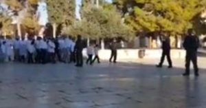 Heavily armed Israeli forces escorted large groups of Israeli settlers as they stormed the Al-Aqsa Mosque compound on Wednesday, for the Jewish holiday of Yom Kippur. Spokesman of the Islamic Endowment Department (Waqf), Firas al-Dibs, said that, within half an hour, about 40 Israeli settlers stormed the Al-Aqsa Mosque through the Moroccan Gate, under the … Continue reading VIDEO: Settlers Storm Al-Aqsa on Yom Kippur