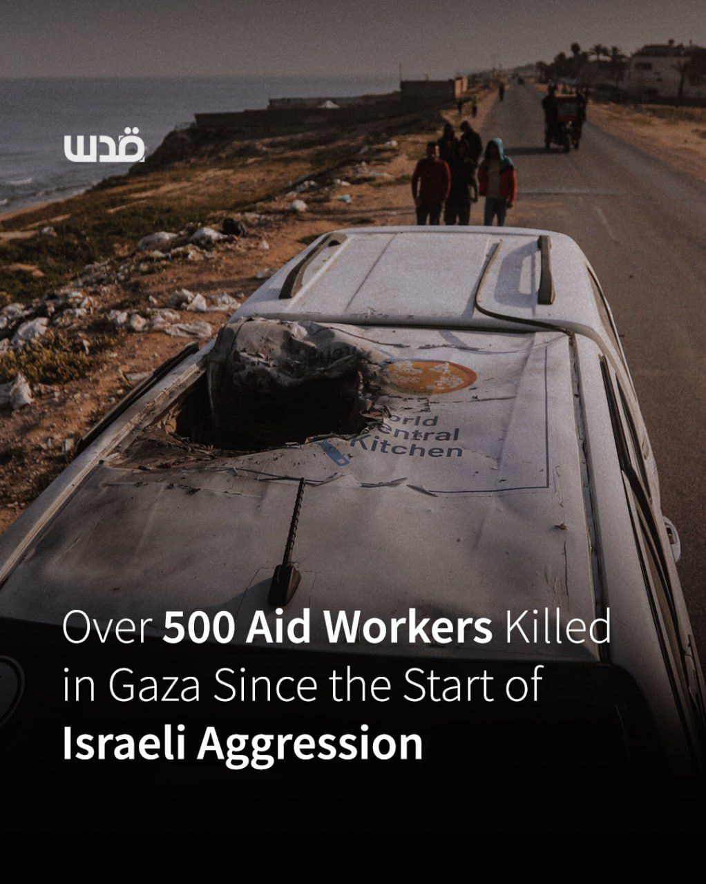 The Palestinian Ministry of Foreign Affairs announced that over 500 humanitarian workers have been killed in the Gaza Strip since the Israeli genocide began on October 7, 2023, according to UN reports.