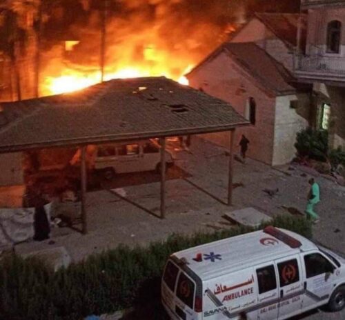 Reports indicate that the Israeli military fired two missiles at the hospital’s reception area, causing extensive damage to the emergency building, laboratory, and pharmacy wards.